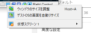 画面リサイズ機能を有効にするには、仮想マシンが起動した状態で下図の「ゲストOSの画面を自動リサイズ」を選択します。